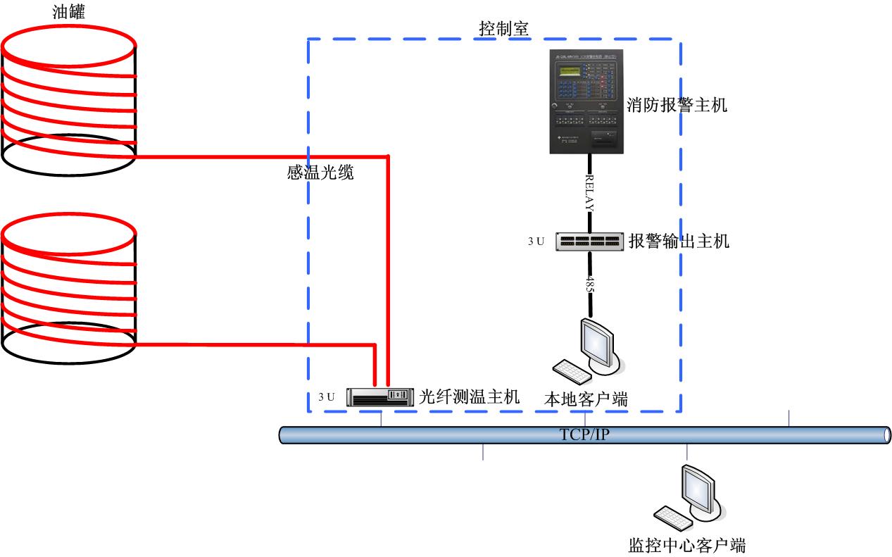 儲油罐區是石油庫的核心和主體,既是國家和化工企業日常油品的儲存場所,也是作為戰略物資基地起到備戰備荒的作用。油罐、油罐區易發生火災和爆炸事故,并且一旦出現事故,其破壞性非常強,會造成巨大的人員和財產損失。其中相當比例的火災是由于油罐溫度過高導致超溫自燃,進而引起火災,所以對儲油罐區進行實時溫度監控工作就顯得至關重要。如果能夠及時獲得溫度過高的預警信息,就能避免火災的發生?!妒突て髽I設計防火規范》中明確規定儲油罐火災監控系統必須采用不帶電的光纖傳感產品。